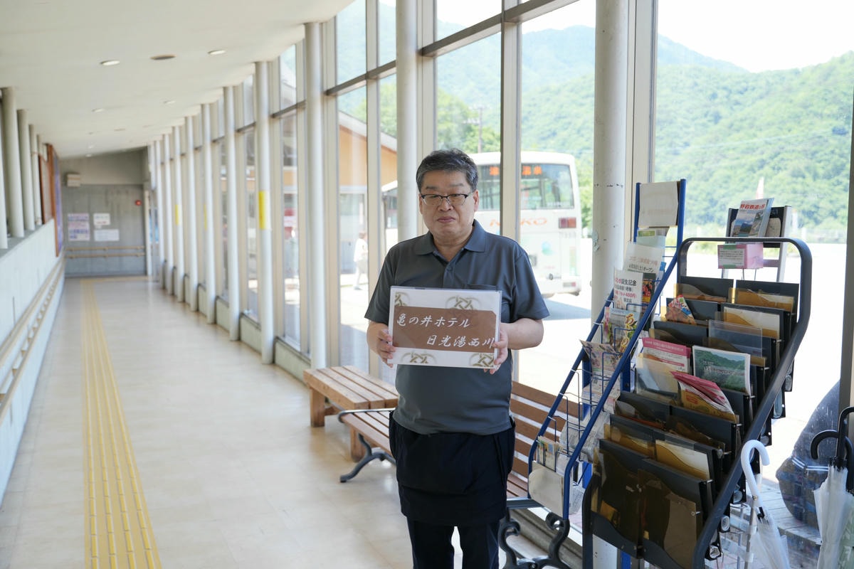 這次我從淺草搭乘東武鐵道的特快車(東武特急リバティ)出發到湯西川溫泉,大約兩個小時半可以抵達湯西川溫泉站,從這邊下車後會看到有龜之井酒店日光湯西川全包式度假村的工作人員在車站前等候,搭著接駁車就能抵達飯店。