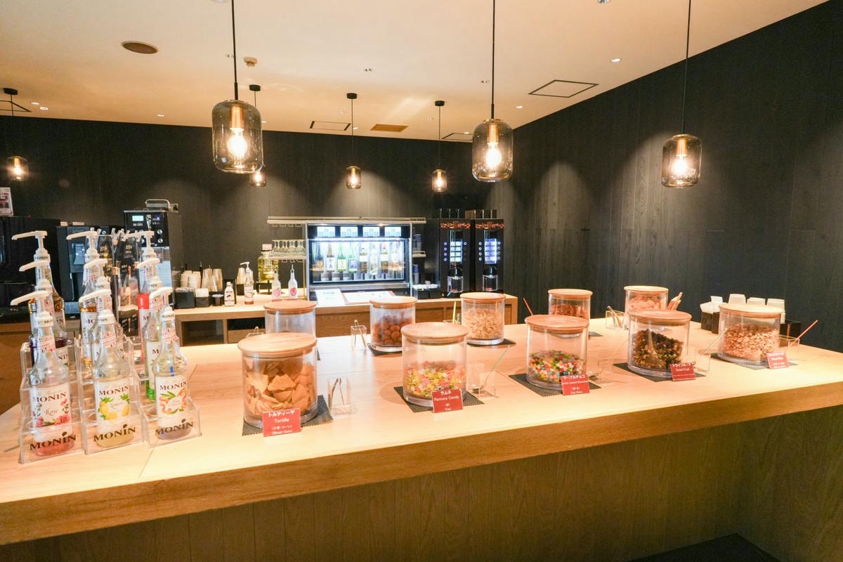 光是酒類就有提供「日本酒、紅酒、啤酒」等酒類之外,也有提供無酒精的飲料,大人小孩都可以在這邊享受。另外餅乾小點心類也準備非常多,可以來配酒享用。