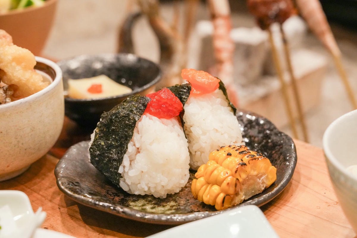 - 現場手工握製的壽司卵與魚卵飯糰(筋子 :帶膜鮭魚卵),鹹香滿滿,用栃木縣產米飯現做,超級好吃!